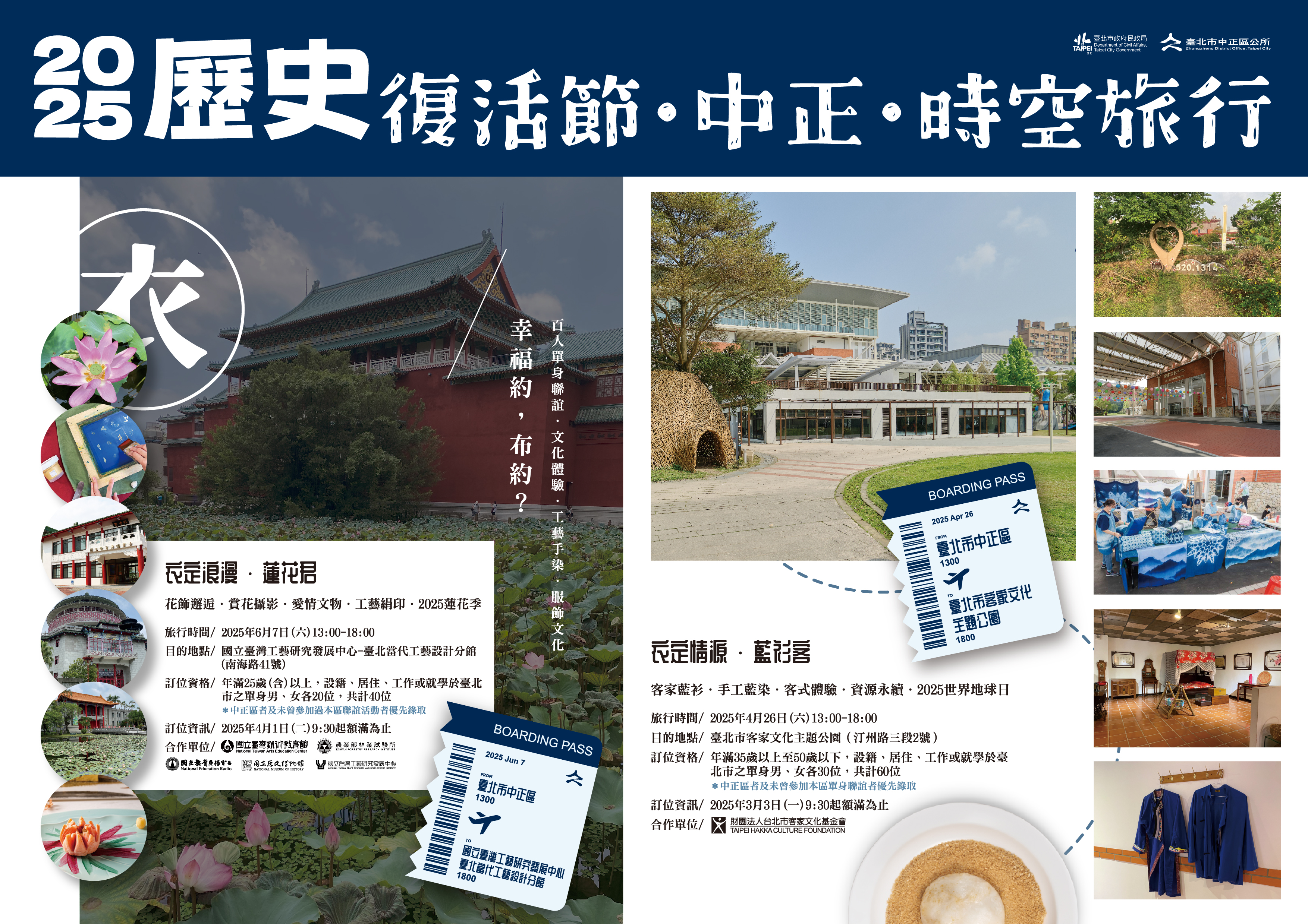 豐富精采的系 列活動,邀您一起互動體驗,品味獨特的中正區地方文 化!