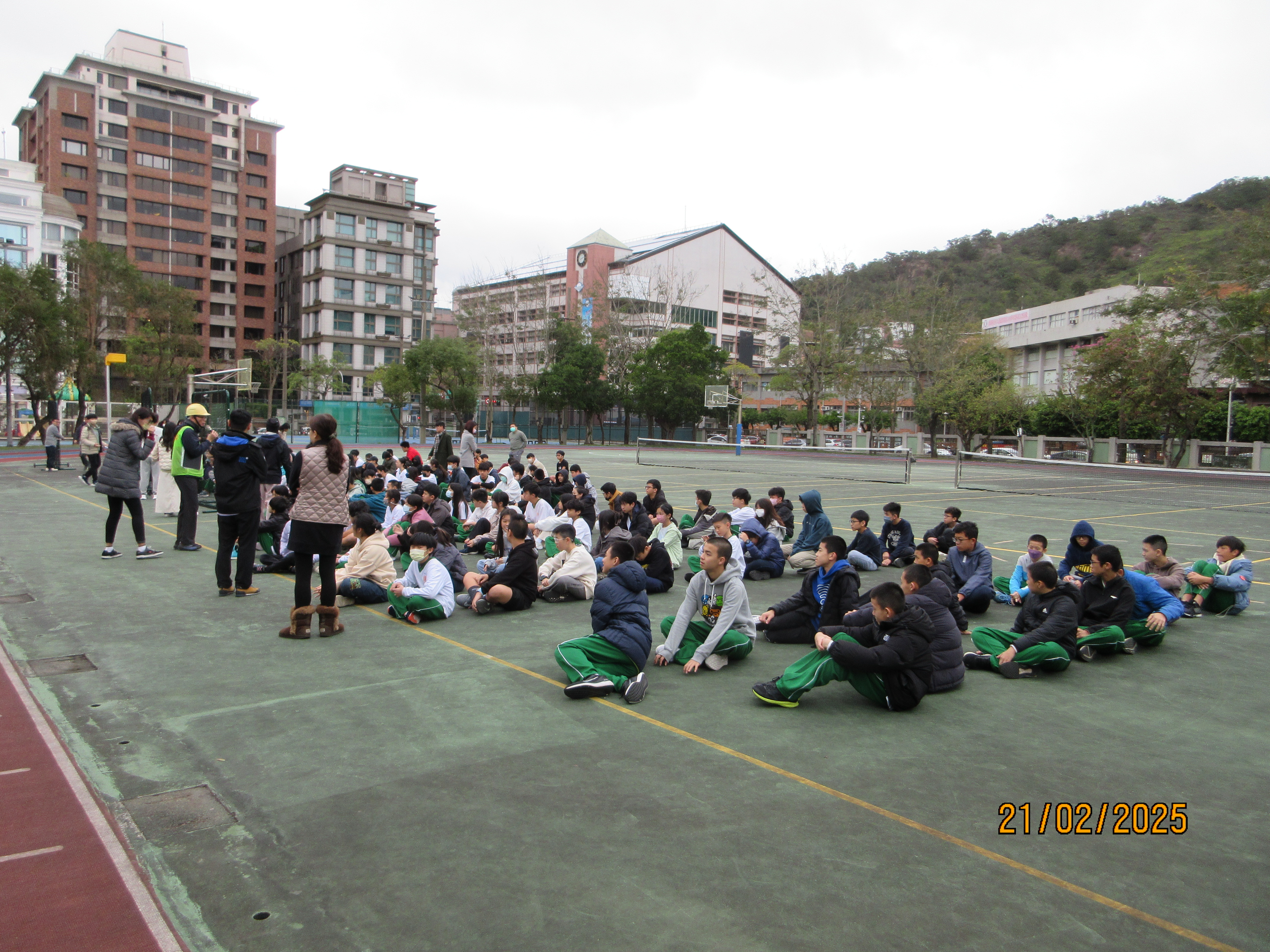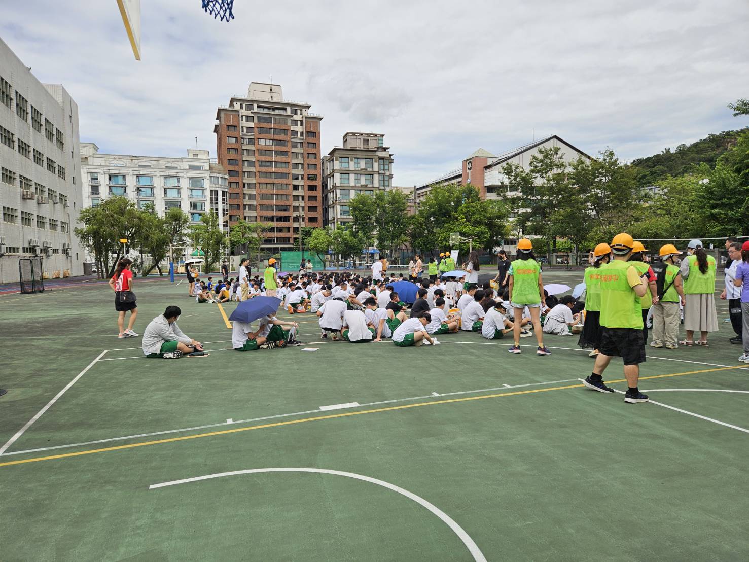 ▲地震避難疏散引導 | ▲疏散至操場集合點名 |