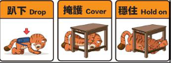 ▲避難引導組廣播 | ▲警報響起,遵循趴、掩、穩避難姿勢 | |