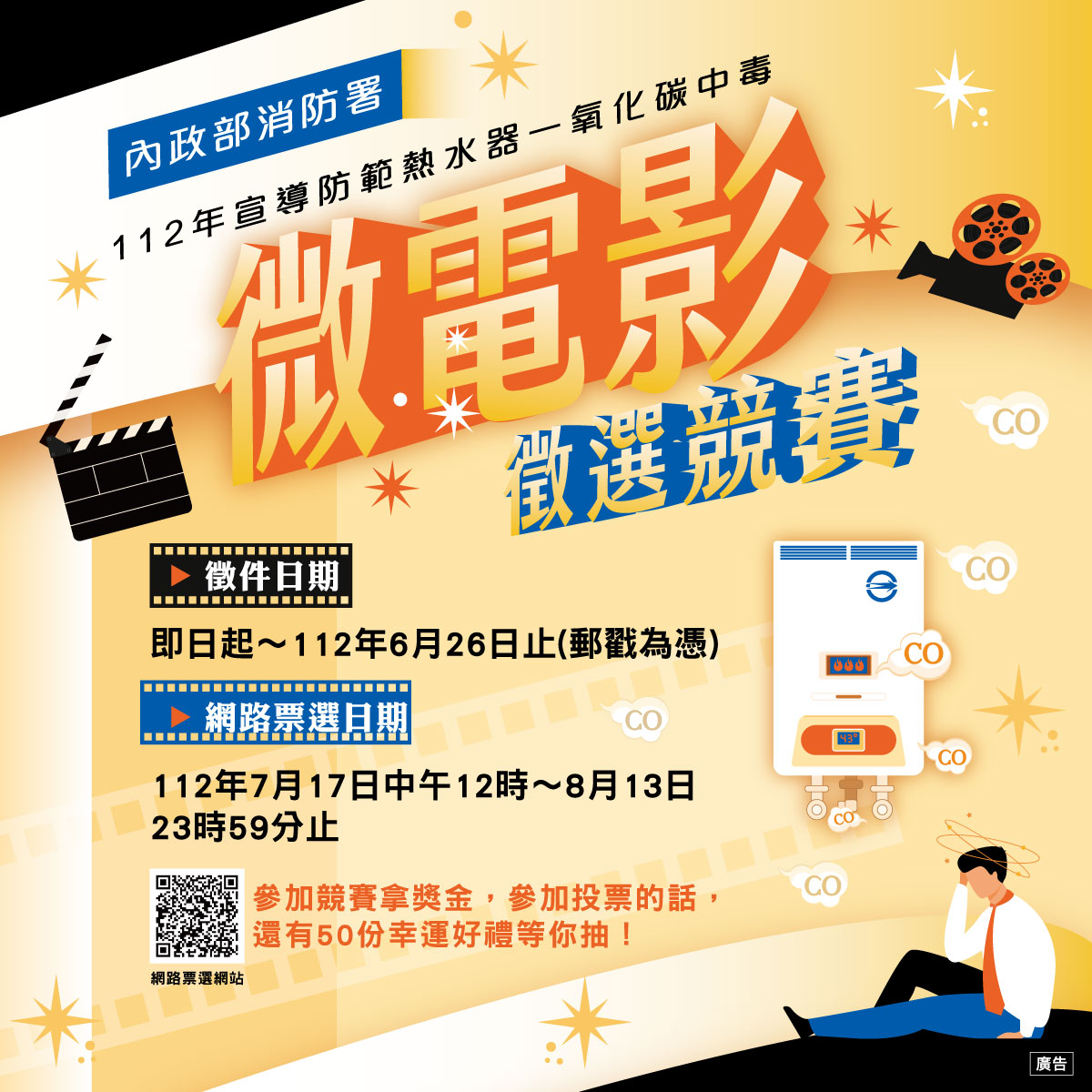轉內政部消防署「112年宣導防範熱水器一氧化碳中毒 微電影徵選競賽」