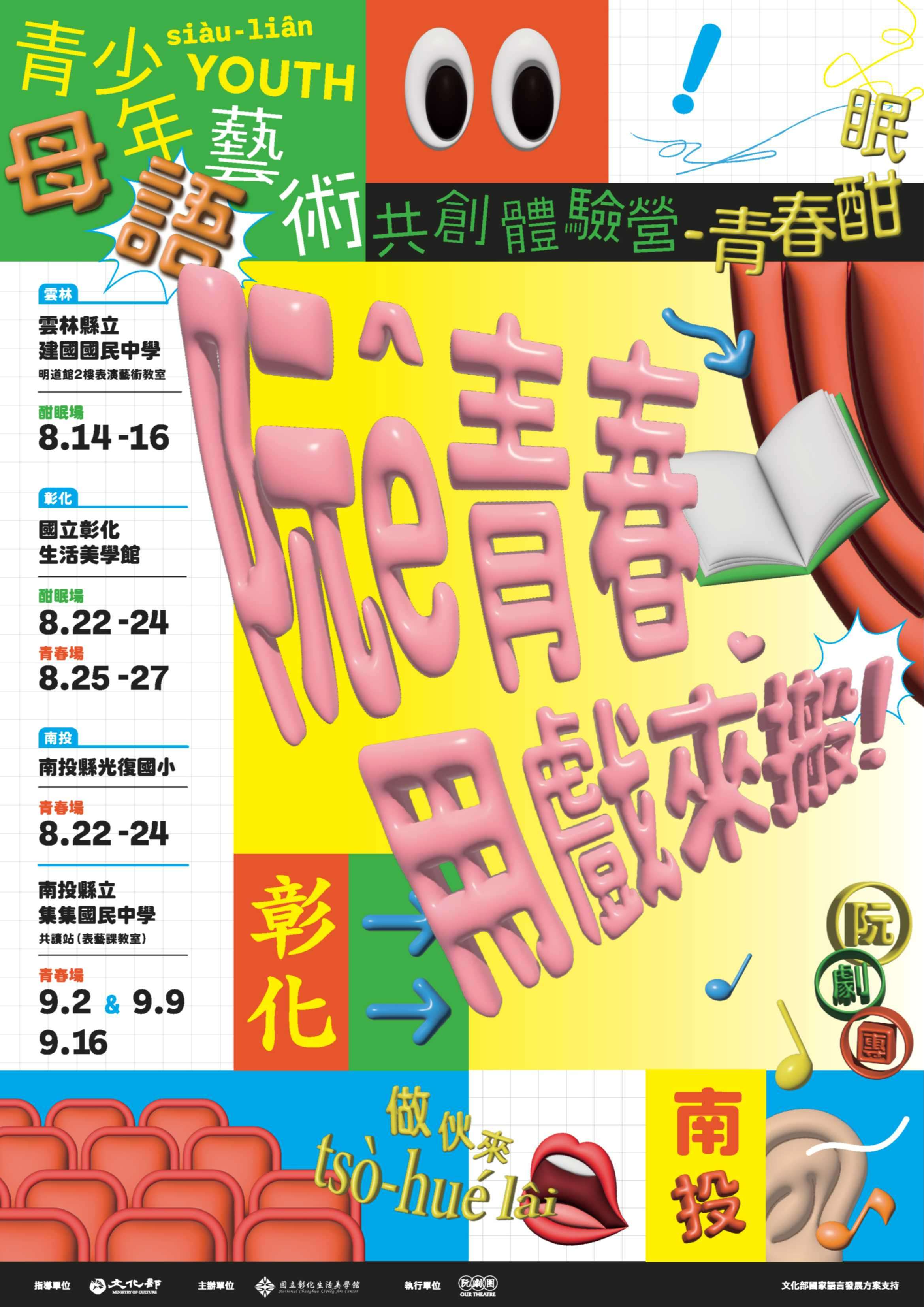 本活動以國、高中青少年為對象,由表演藝術團隊帶領青少年進行藝文活動體驗,鼓勵青少年參與藝文活動、體驗表演藝術,且能以不同的形式了解台語,期盼帶給青少年不同的文化內容以及語言學習,並推動戲劇教育進入青少 年的生活。