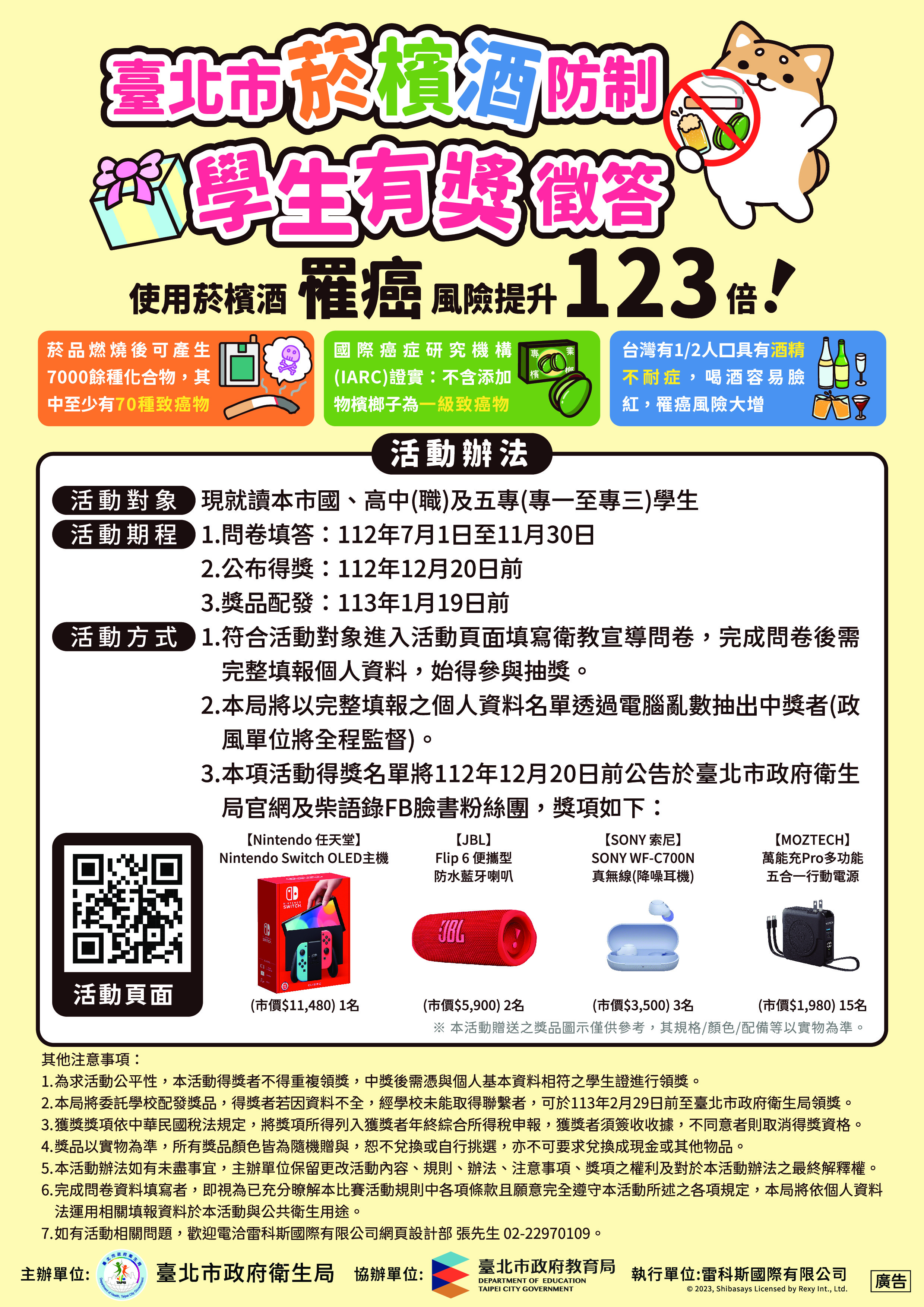 三、有鑑於青少年時期的健康行為,將影響其成人健康狀況, 期藉由旨揭健康促進活動紮根建立學生健康識能,鼓勵學生參加活動。