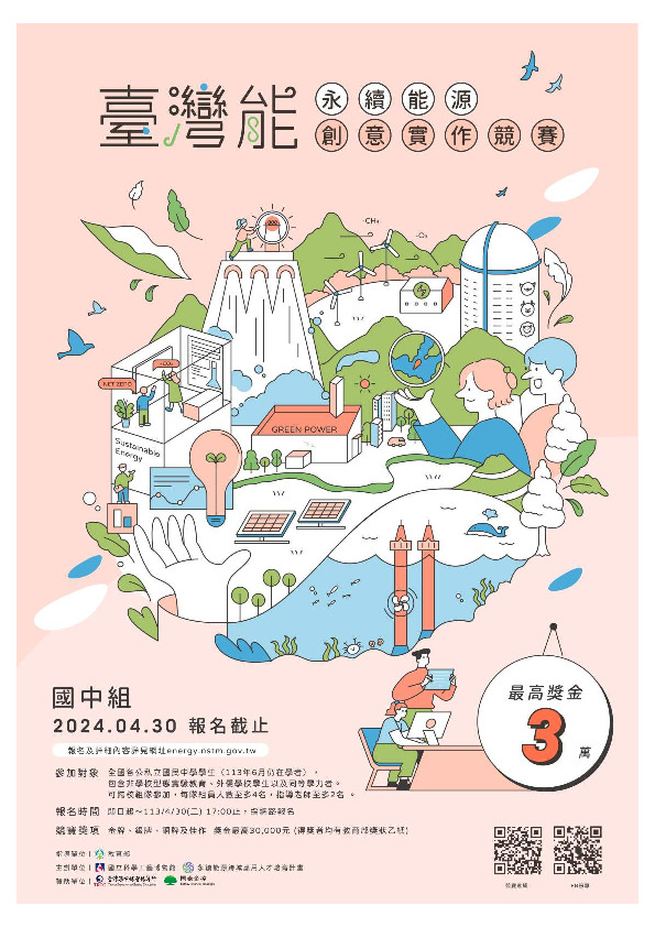 (二)本競賽限網路報名,報名時間即日起至113年4月30日下 午5時止,詳細競賽辦法及內容請見網頁 https://energy.nstm.gov.tw。