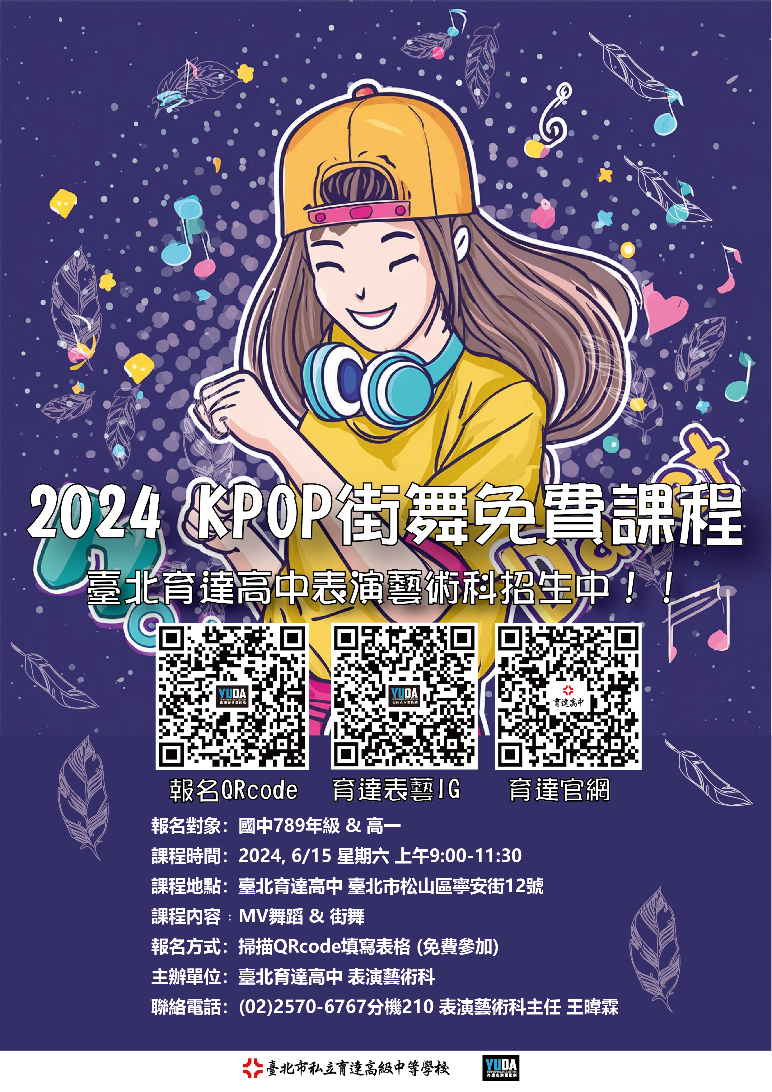 一、育達高中舉辦「2024 KPOP街舞免費課程」。