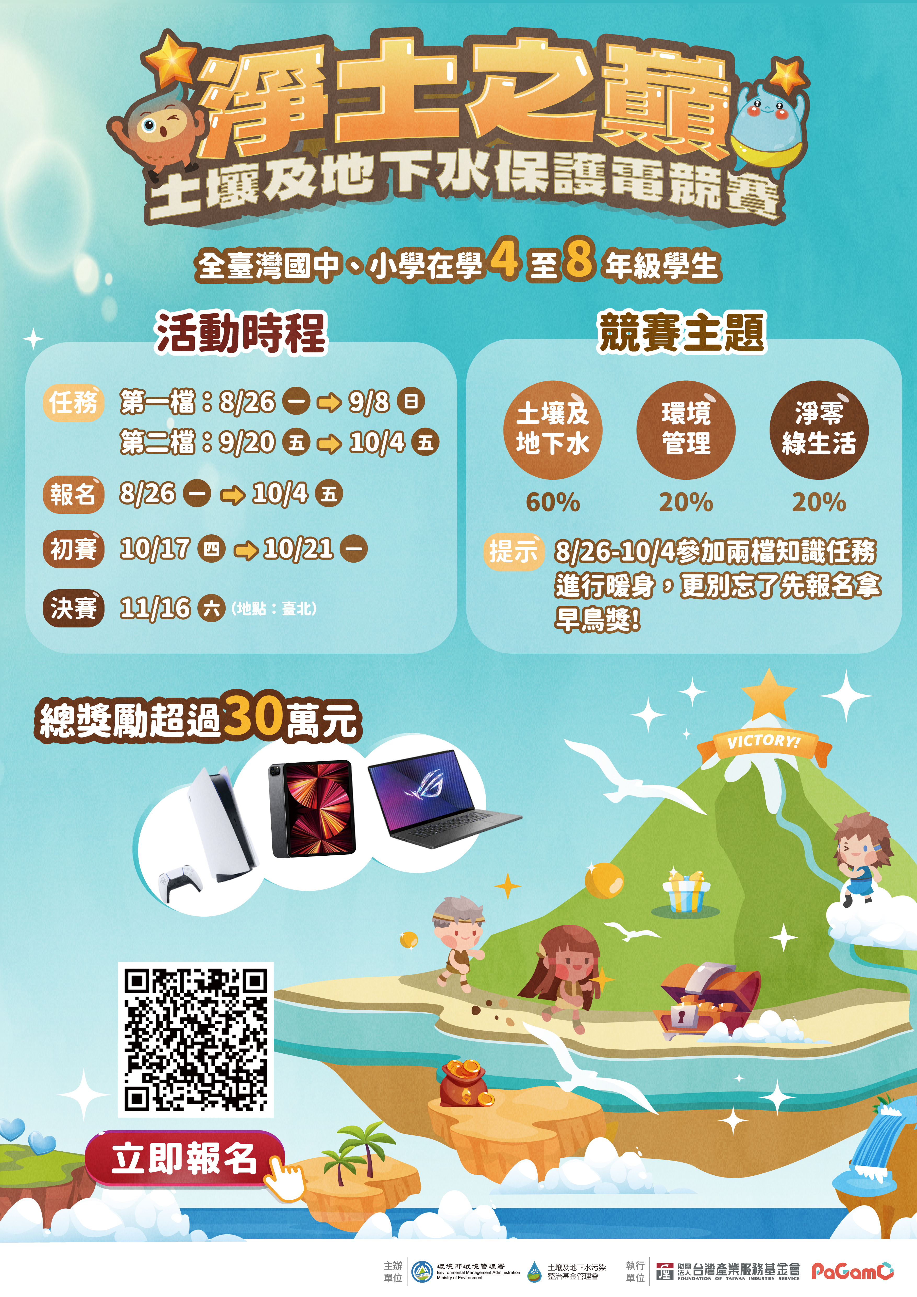 二、為提升全國民眾了解土壤及地下水環境保護之重要,該署 特辦理旨揭電競賽活動,競賽對象為國小四年級至國中八 年級之在校生。