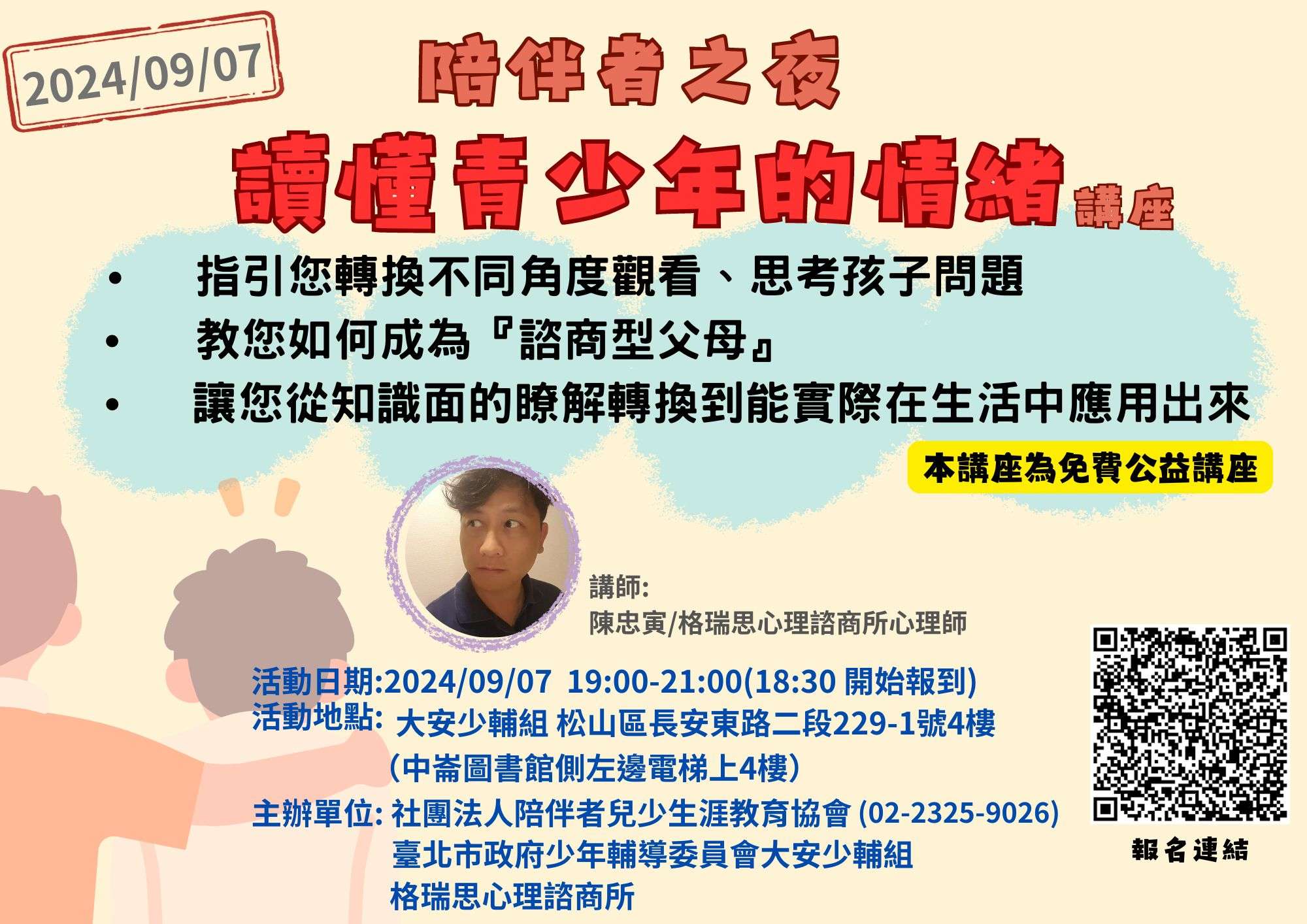 邀請有豐富實作經驗的陳忠寅心理師來跟父母分享青少年教養議題,