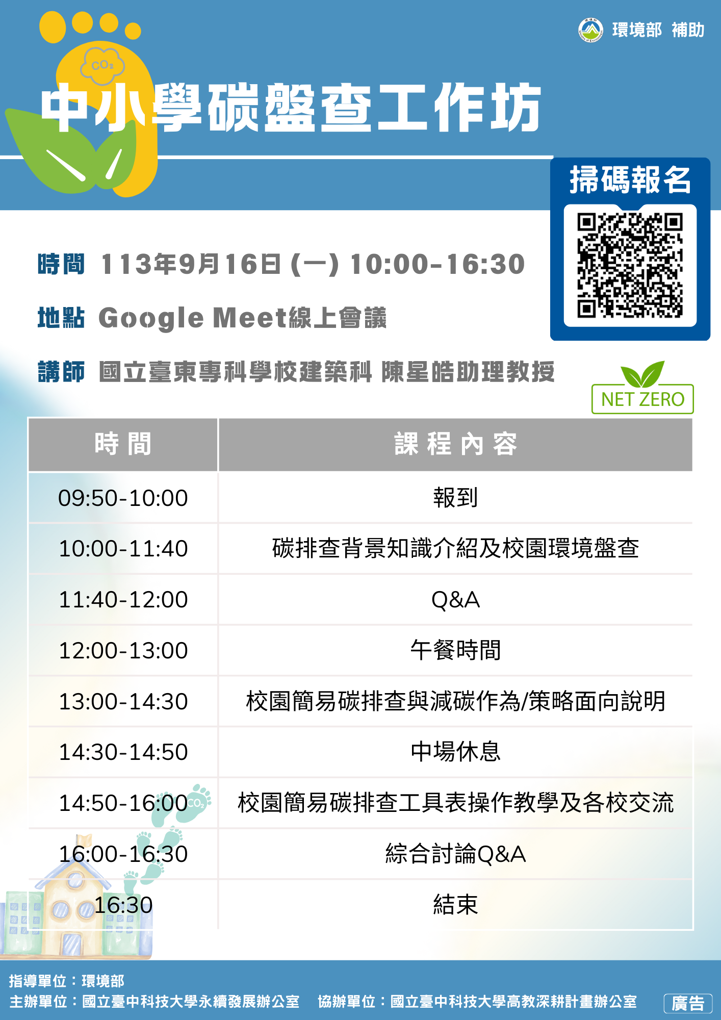二、旨揭工作坊是為協助教師理解校園碳盤查與國際淨零排放 趨勢間之連結,使教師熟悉碳盤查過程並運用「校園簡易 碳盤查手冊」於教學中,從而能夠引導學生深入了解淨零 排放與減碳行動,培養其永續發展的意識與實踐能力,以 達到校園環境永續管理的目標。