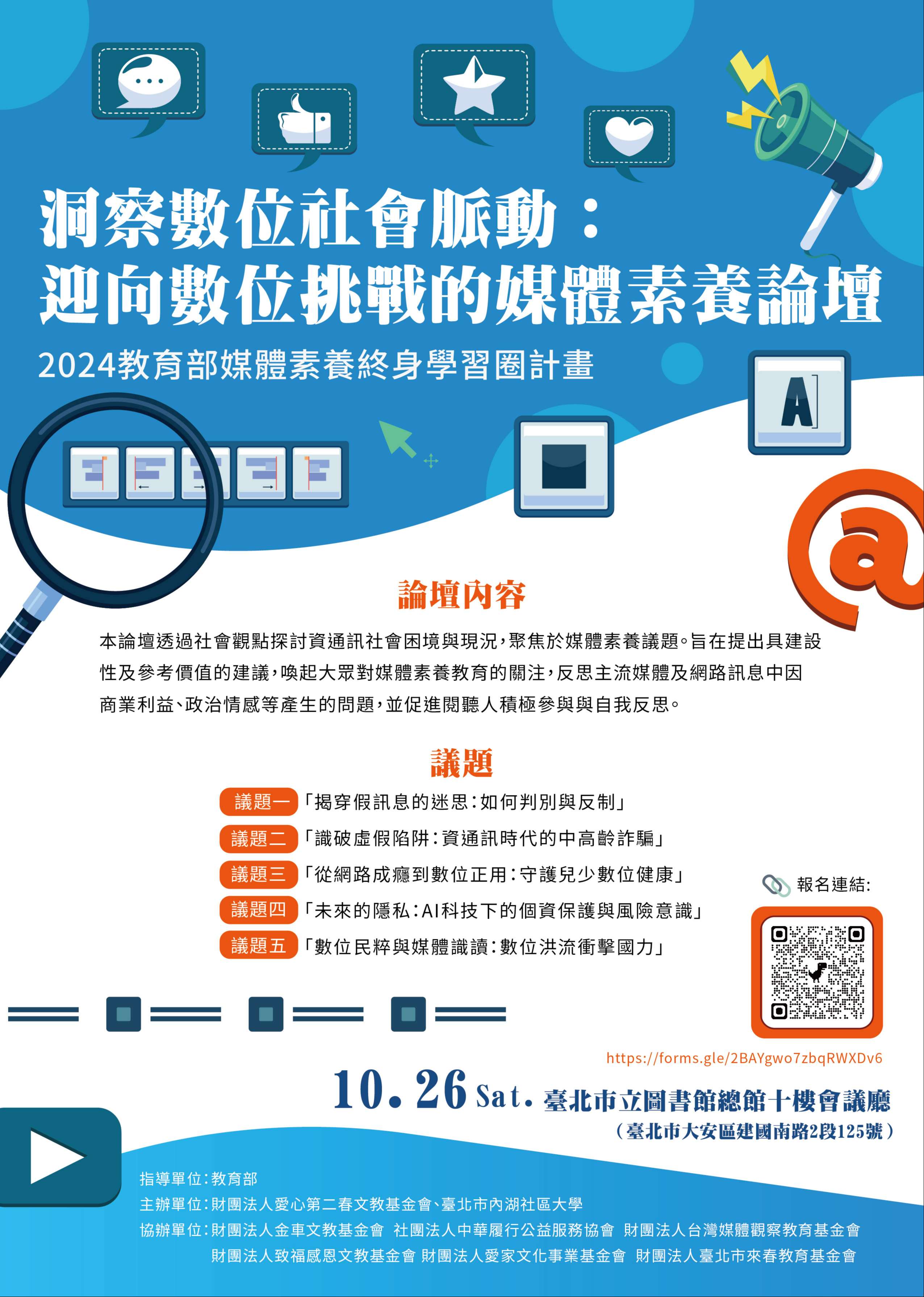 一、本論壇旨在提出具建設性及參考價值的建議,喚起大眾對 媒體素養教育的關注,反思主流媒體及網路訊息中因商業 利益、政治情感等產生的問題,並促進閱聽人積極參與與 自我反思。