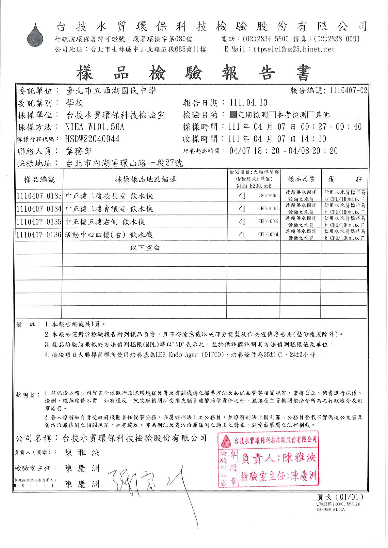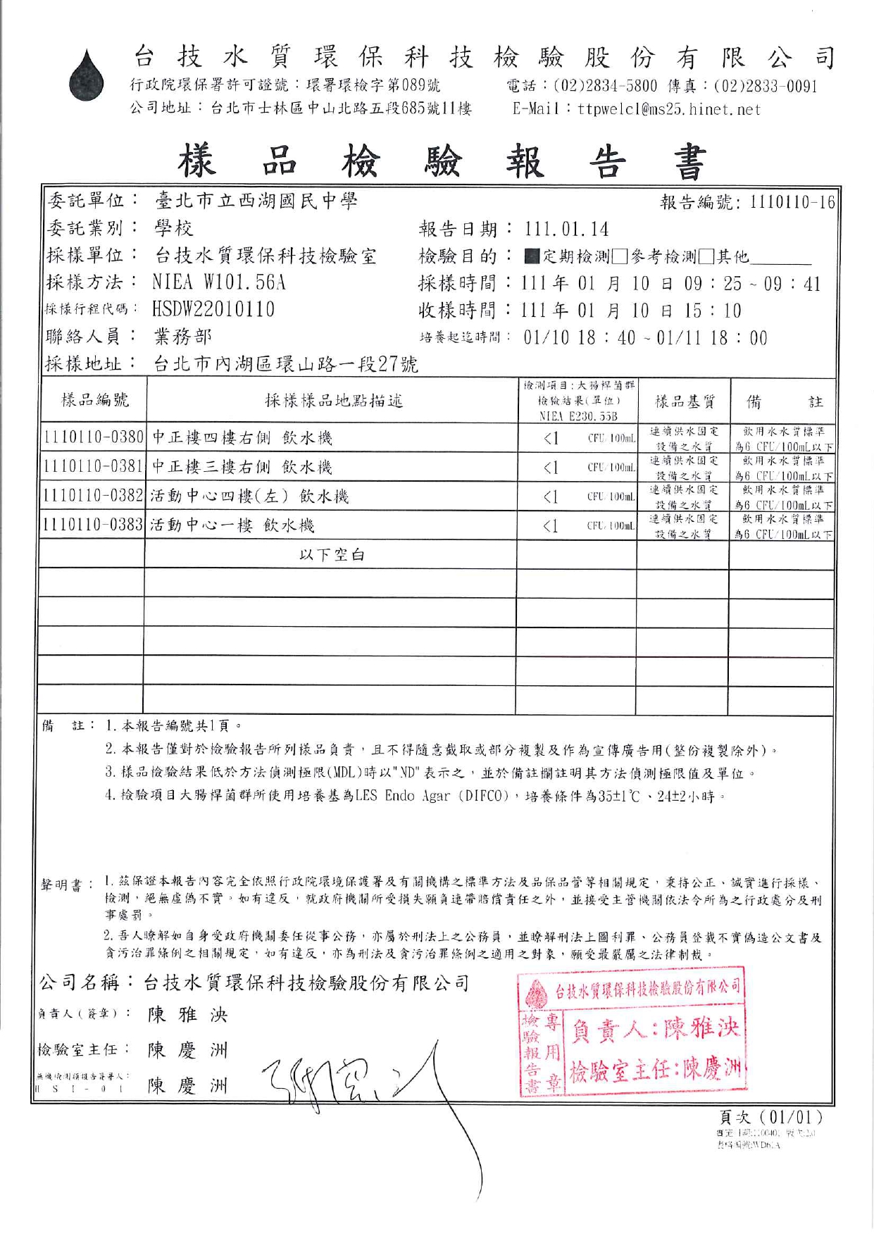 採樣時間:111/1/10、111/4/13、111/7/6、111/10/4
