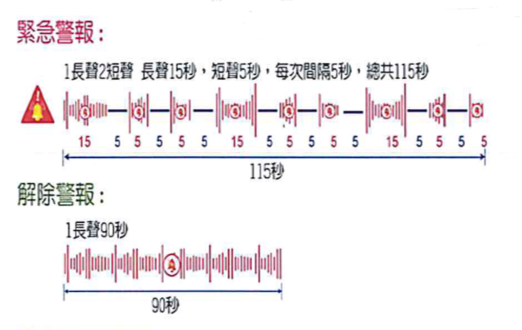 ★★★★★★ 空襲警報信號(圖示如下):緊急警報、解除警報