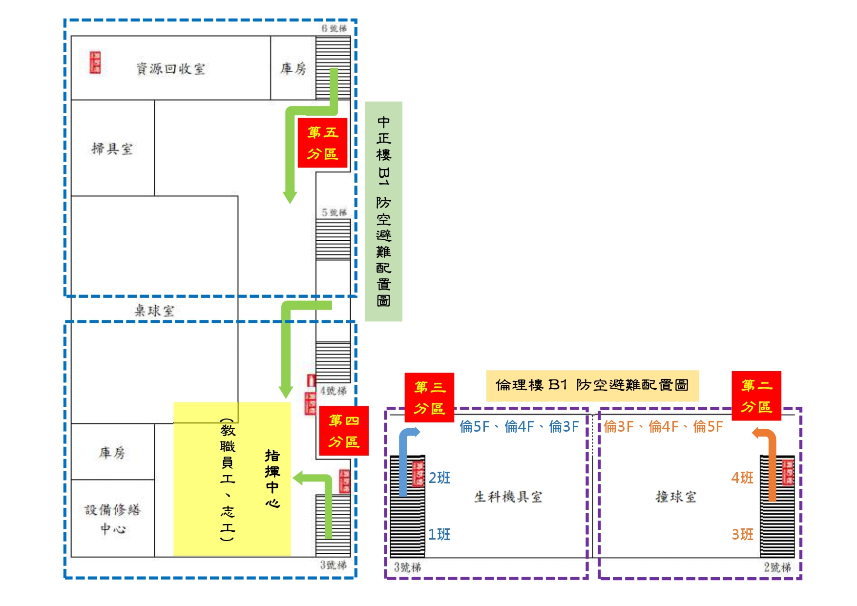 ★★★★★★ 本校班級(教職員生)空襲災害避難空間圖示如下: